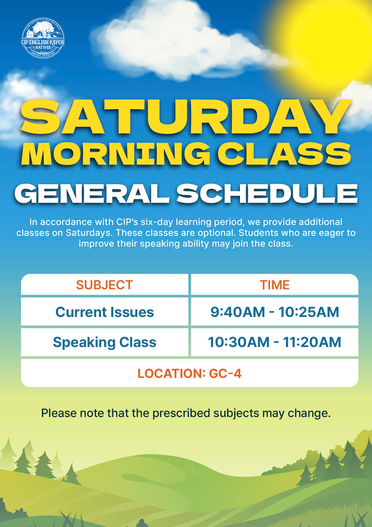Our school believes that learning English every day a little is better than studying a lot in one day. That is why we are the first school in the Philippines to have Saturday classes every week, making a six-day class week. Students in the Sparta Course are required to attend this class.