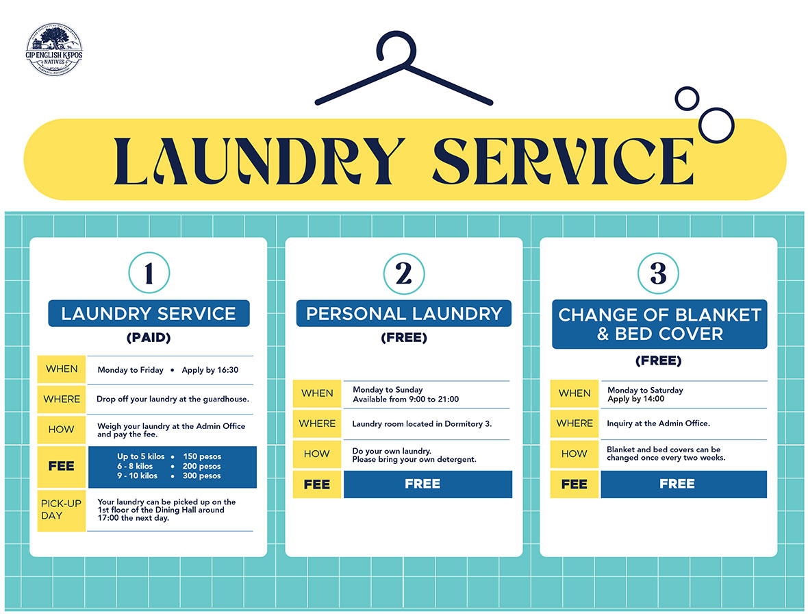 Our laundry service is outsourced. The typical fee is 150 pesos per load (up to 5 kilograms).